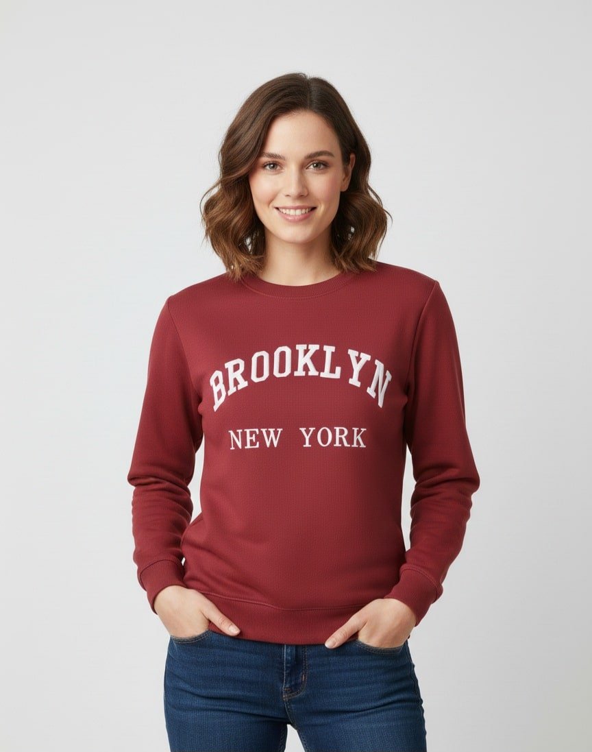 Woman’s Long Sleeve Crew Neck Embroidery Sweatshirt
